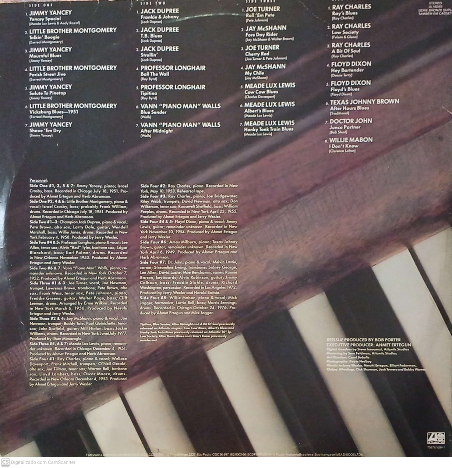 Lançado em 1987 pela Odeon (sob licença da Atlantic), Atlantic Blues: Piano celebra os 50 anos da lendária gravadora reunindo um time histórico de pianistas que moldaram o blues. É um documento sonoro que percorre décadas do gênero, trazendo desde o toque hipnótico de Jimmy Yancey até a sofisticação de Ray Charles, passando pelo boogie-woogie incendiário de Meade Lux Lewis e a cadência única de Professor Longhair. A coletânea é um tributo ao piano como instrumento central do blues, revelando suas várias faces: intimista, festiva, crua e inovadora. Um registro essencial para compreender a herança do blues no século XX.