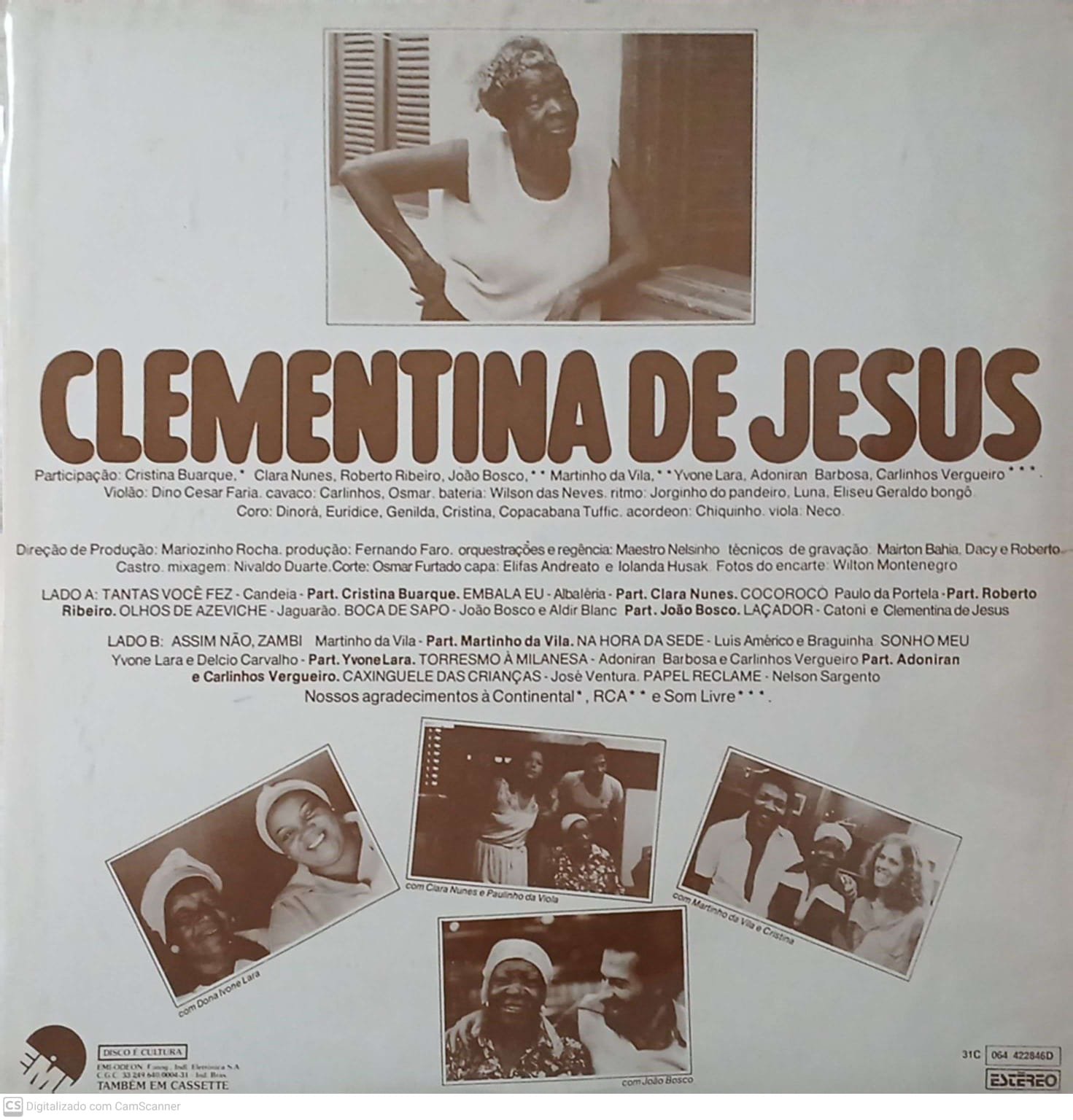 Lançado em 1979 pela EMI, este disco celebra Clementina de Jesus em plena maturidade artística, cercada de grandes nomes da música brasileira. Descoberta tardiamente por Hermínio Bello de Carvalho nos anos 1960, Clementina já era, à época, a guardiã viva das tradições afro-brasileiras no samba e no jongo. O álbum reúne composições que transitam entre a ancestralidade rítmica e a poesia popular, em registros marcantes como “Olhos de Azeviche”, de Candeia e Elcio Soares, e “Sonho Meu”, parceria de Dona Ivone Lara e Délcio Carvalho, um clássico eterno da MPB. Há também momentos de humor e irreverência em “Torresmo à Milanesa”, de Adoniran Barbosa, e a força do canto coletivo em “Assim Não Zambi”. Um trabalho que reafirma Clementina como símbolo da resistência cultural, mantendo viva a tradição negra dentro da música brasileira.
