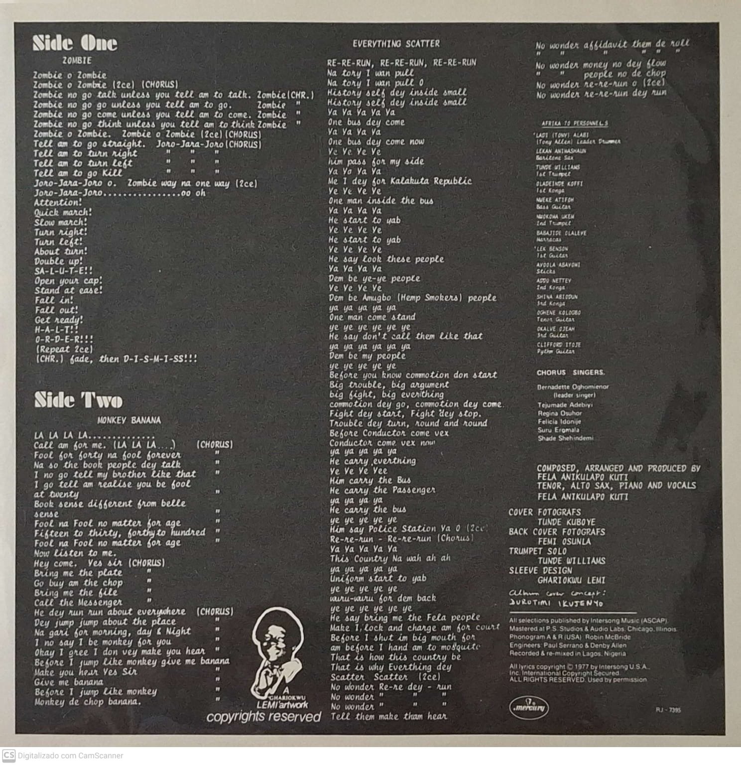 Fela Kuti – vocais, saxofone, teclados, arranjos