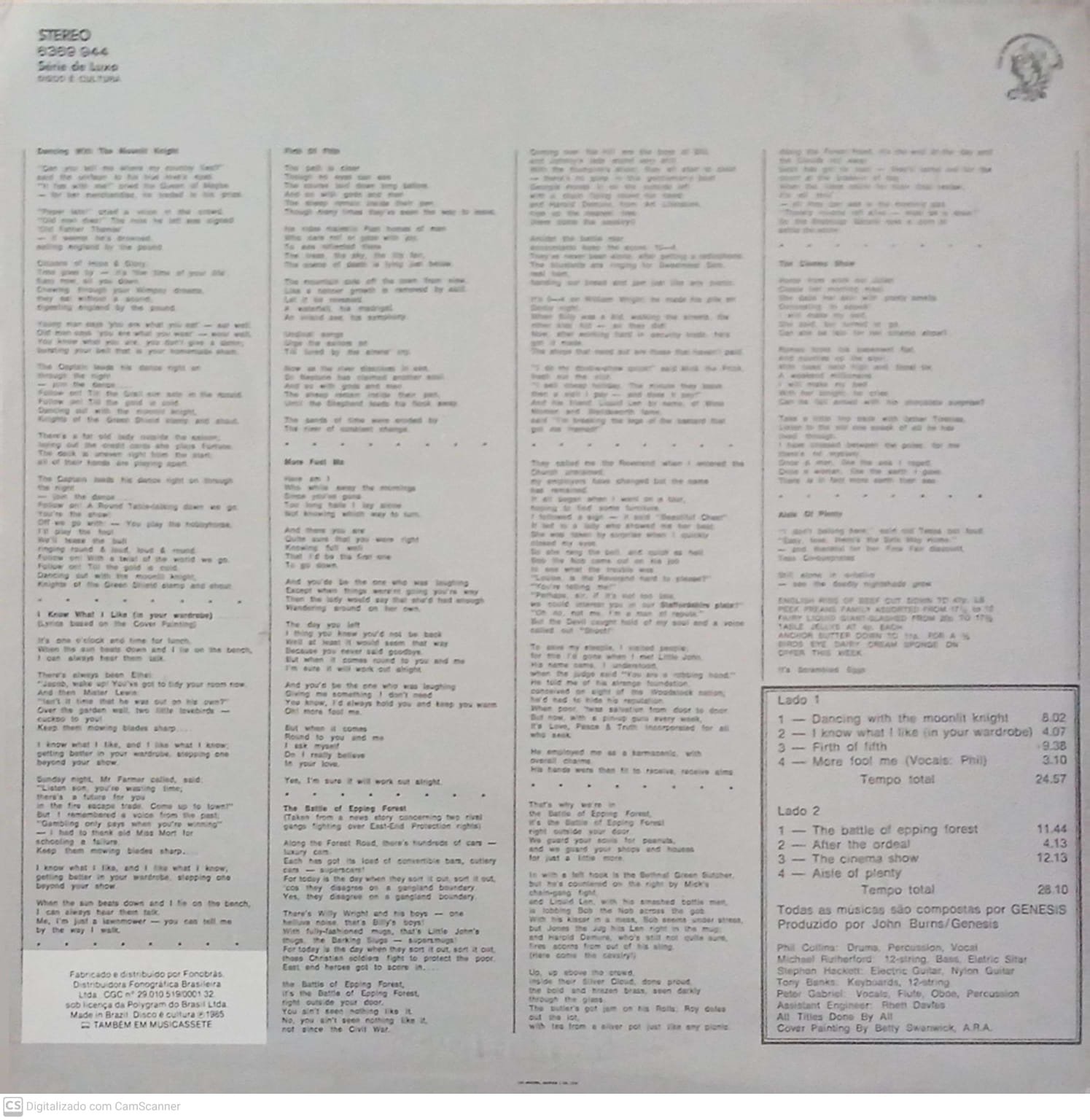 Destaques incontestáveis são “Firth of Fifth”, com solo de teclado épico de Tony Banks; “Dancing with the Moonlit Knight”, uma viagem lírica e sonora ao coração da Inglaterra pós-industrial; e “The Cinema Show”, uma peça em dois atos que representa o Genesis em sua forma mais ambiciosa e inspirada.