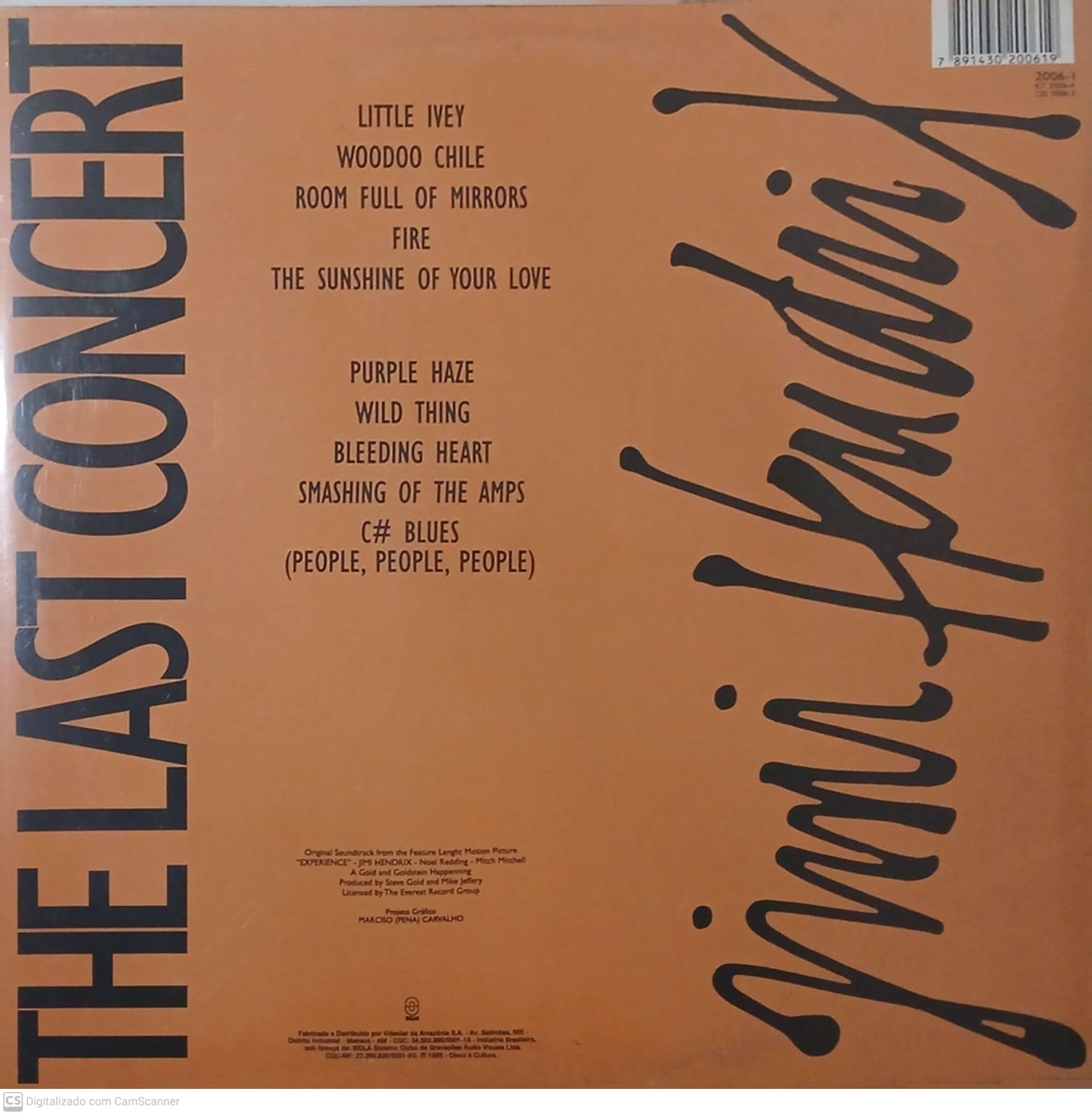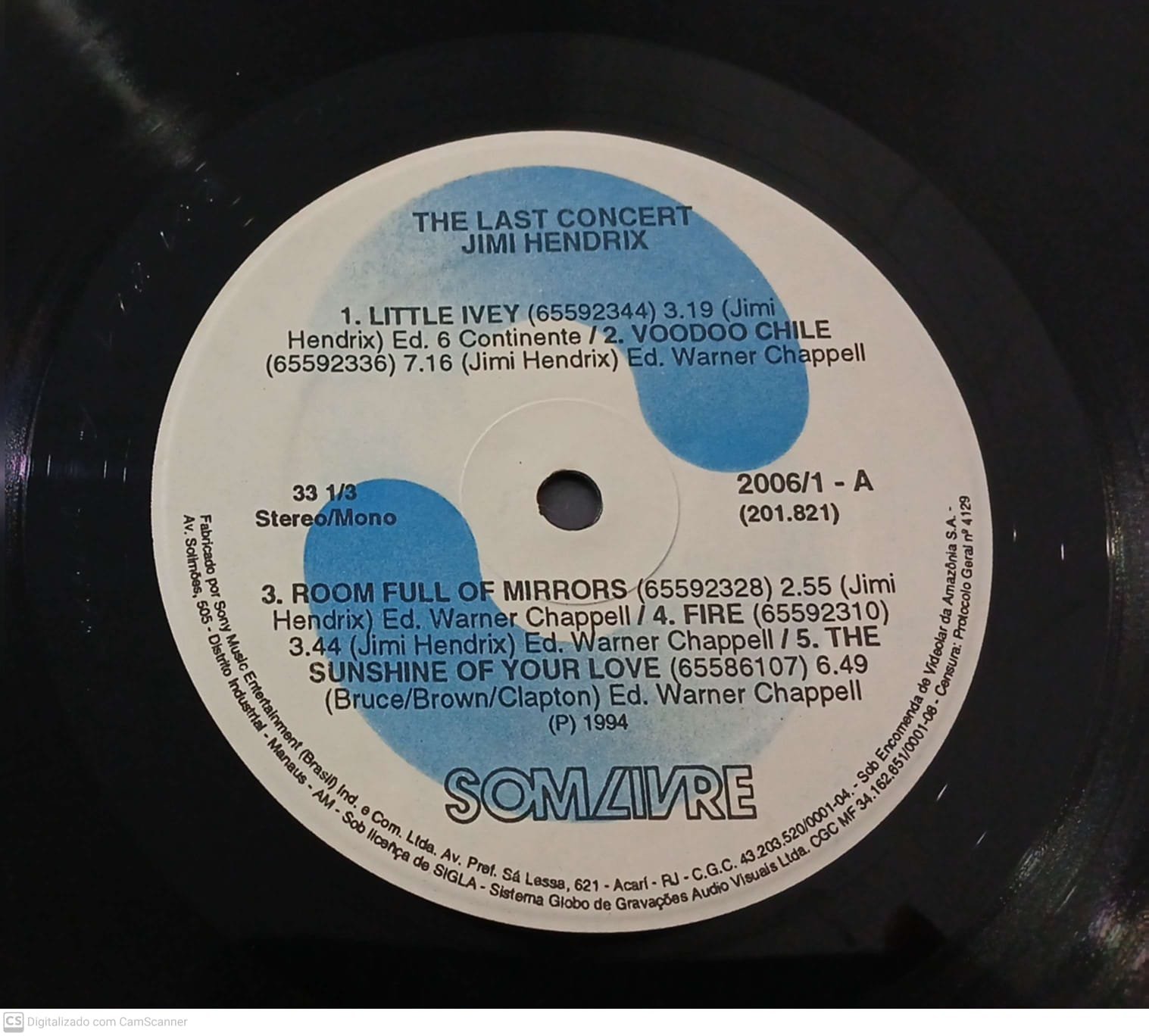 Gravado em 6 de setembro de 1970, na ilha de Fehmarn, Alemanha, The Last Concert captura a intensidade e o improviso que marcaram a última apresentação oficial de Jimi Hendrix, apenas doze dias antes de sua morte. Com solos incendiários e energia crua, o álbum reúne clássicos como “Little Wing”, “Purple Haze” e “Voodoo Child”, além de interpretações viscerais de “Wild Thing” e “The Sunshine of Your Love”. Lançado em 1994 pela Som Livre, em prensagem nacional, este registro é mais que um show: é o adeus sonoro de um dos maiores guitarristas da história, eternizado no vinil.
