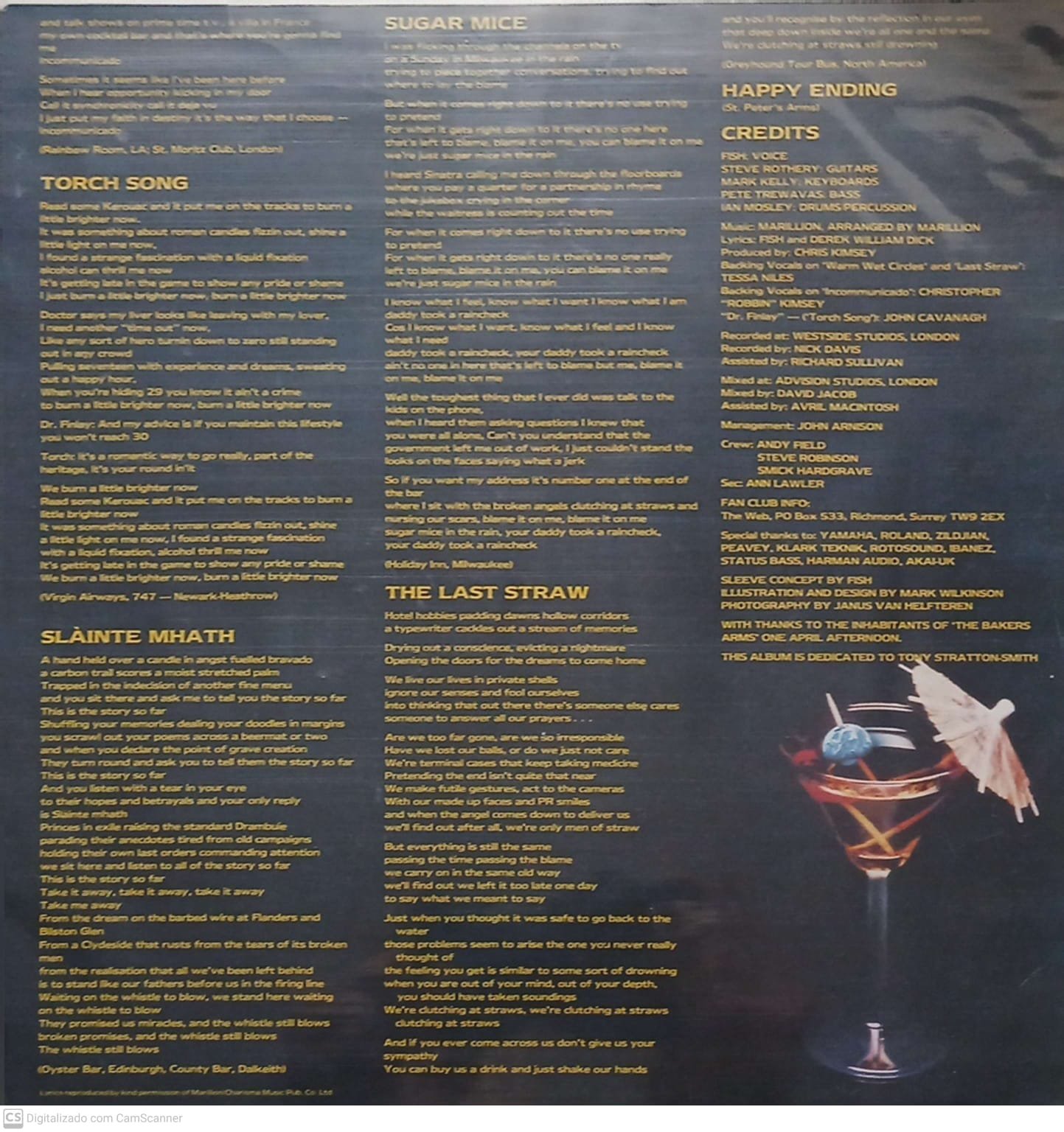 Lançado em 1987, Clutching at Straws é o quarto álbum de estúdio do Marillion e o último a contar com o vocalista Fish, encerrando uma das fases mais marcantes da banda. O disco é conceitual e gira em torno de Torch, um cantor em decadência, afogado em problemas emocionais, alcoolismo e frustrações existenciais. Musicalmente, o álbum mostra um Marillion maduro, com letras densas, climas atmosféricos e melodias emocionantes, consolidando sua importância no rock progressivo dos anos 80. Destacam-se faixas como “Incommunicado”, “Sugar Mice” e “Warm Wet Circles”.