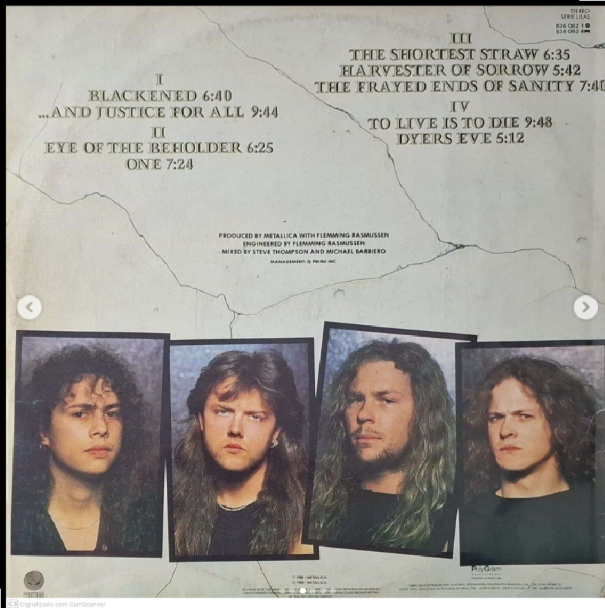 Quarto álbum de estúdio da banda estadunidense de heavy metal Metallica, lançado em 25 de agosto de 1988. Um marco do thrash metal, … combina complexidade técnica e letras ácidas sobre injustiça social. A produção seca e a quase ausência do baixo são pontos polêmicos, mas a brutalidade de faixas como “Blackened” e “Dyers Eve” é incontestável. Apesar da mixagem controversa, o álbum solidificou o Metallica como gênios do metal progressivo.