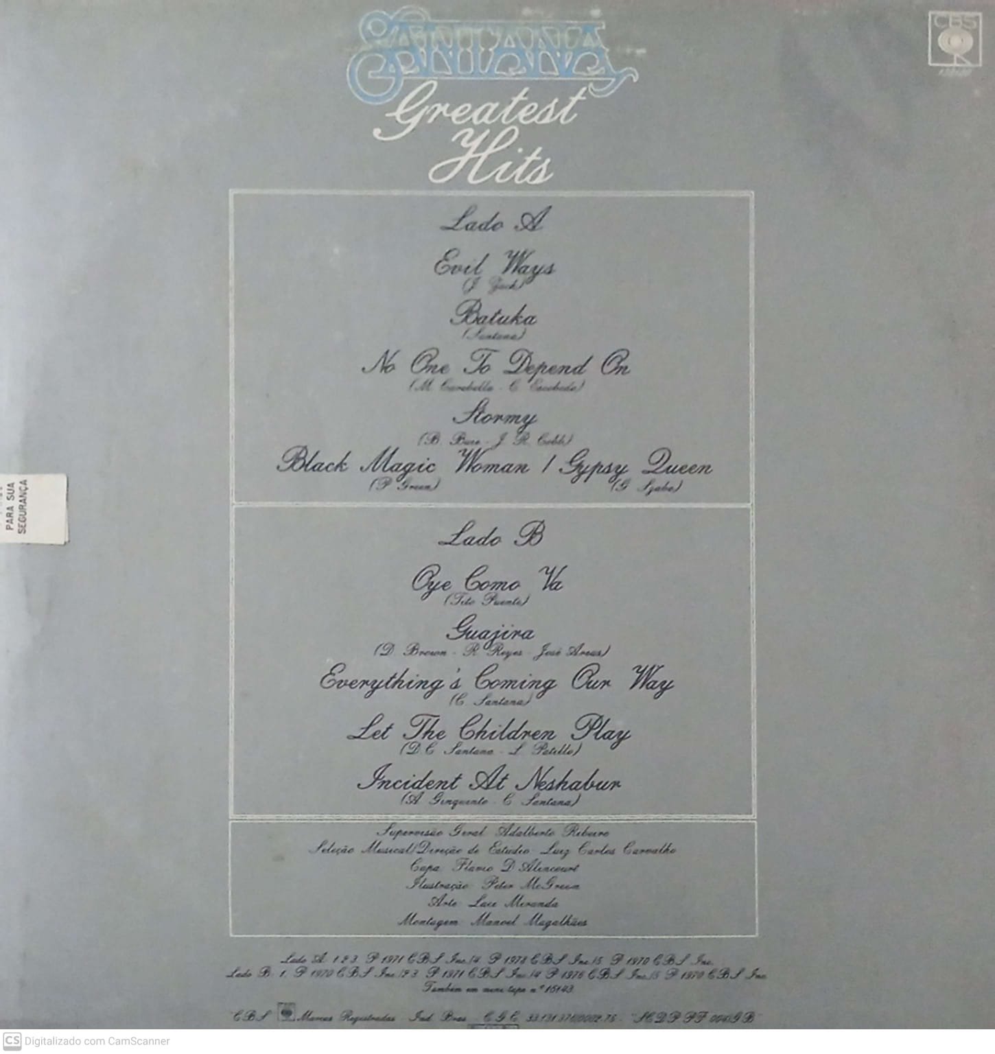 Lançado em 1974, Santana’s Greatest Hits é uma coletânea explosiva que reúne o melhor da primeira fase da banda, com faixas extraídas dos três álbuns iniciais: Santana (1969), Abraxas (1970) e Santana III (1971).